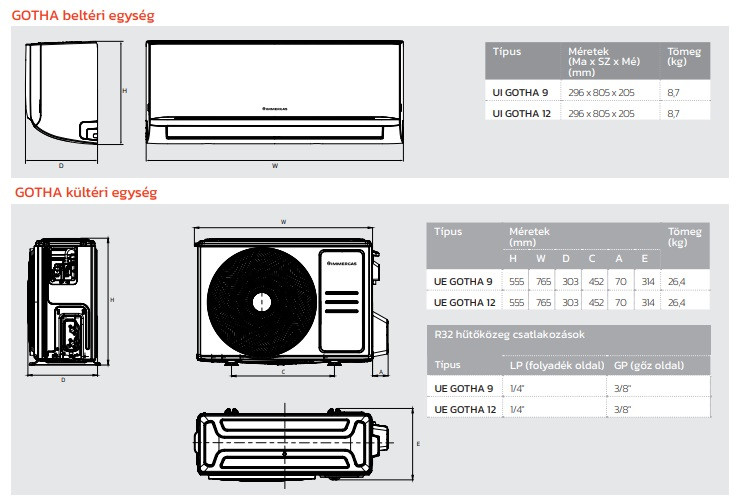 esetén 5,3 és 6,2 kW hűtő/fűtő teljesítmény biztosítható.